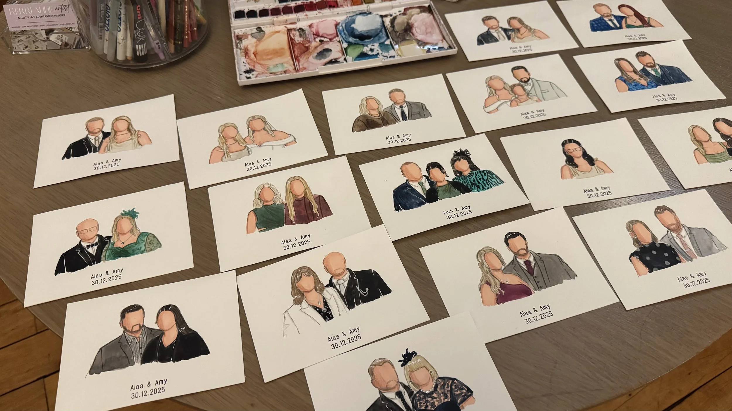 For weddings, corporate events, brand & PR events, plus private parties. Experience unique live painted faceless watercolour portraits for you and your guests.