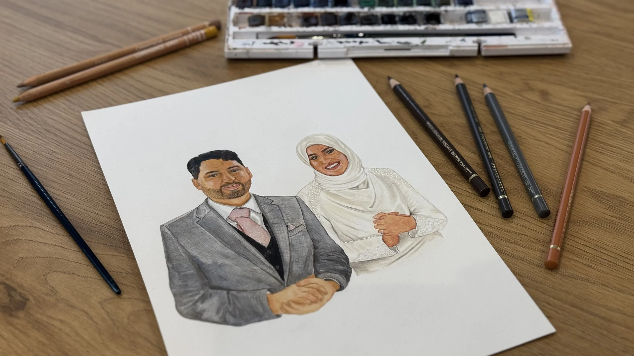 Have yourself and your significant other sketched and painted live in real time on your special day. A one of a kind keep sake you can hang in your home and enjoy for a lifetime.